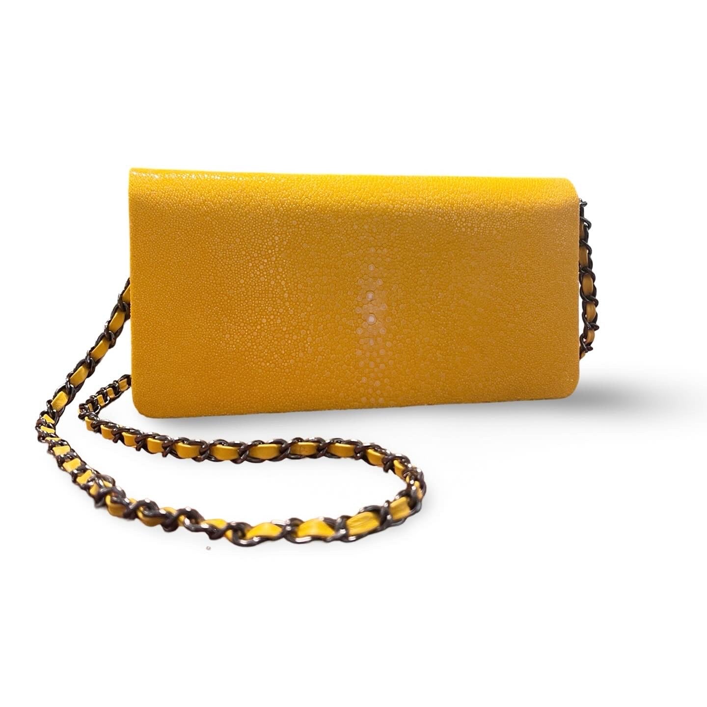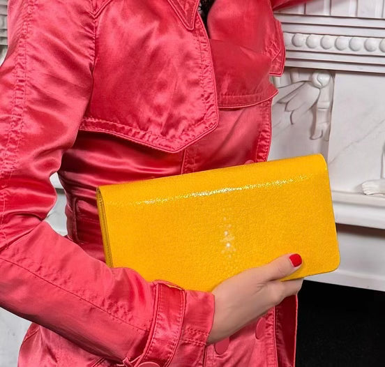 Genuine Stingray Long Clutch in citrine yellow 10"L X 5"H