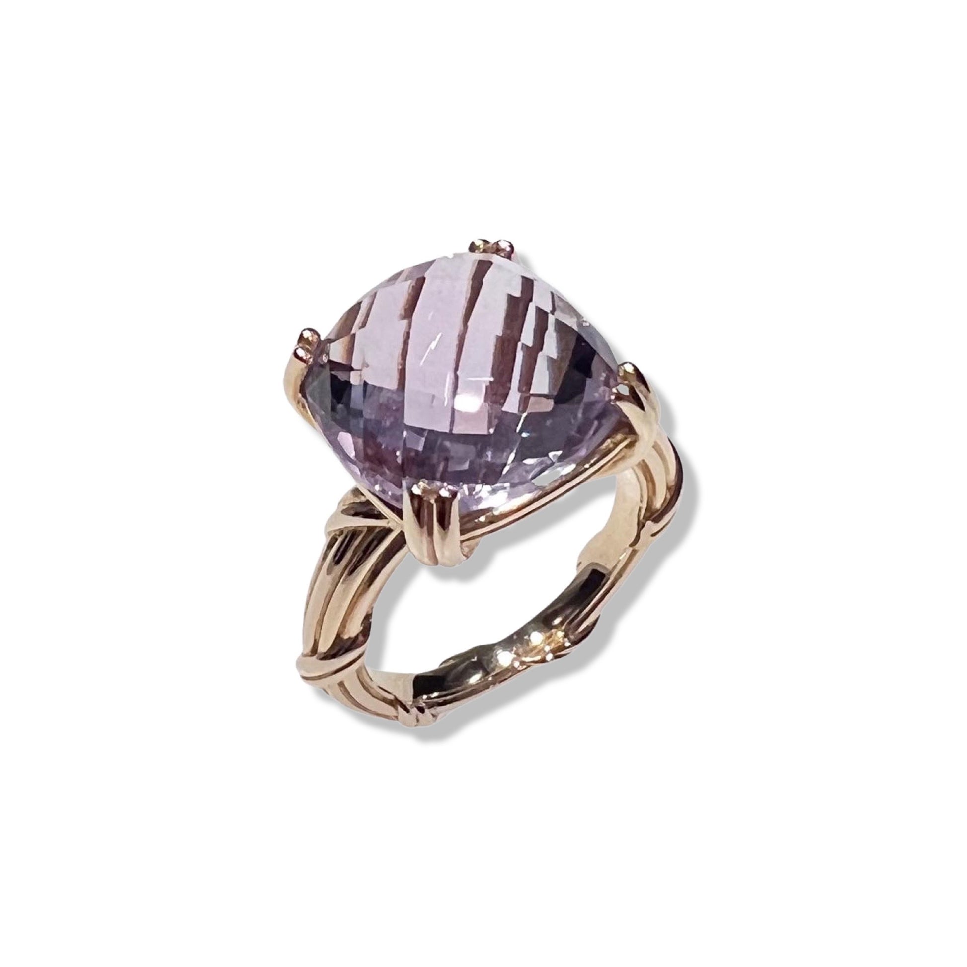Fantasies Cushion Cut Rose de France Cocktail Ring in 18k yellow gold 14mm