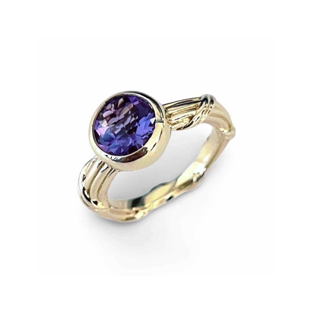 Fantasies Amethyst Bezel Set Solitaire Ring in 18K yellow gold