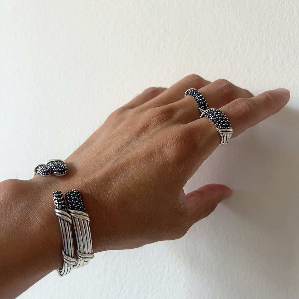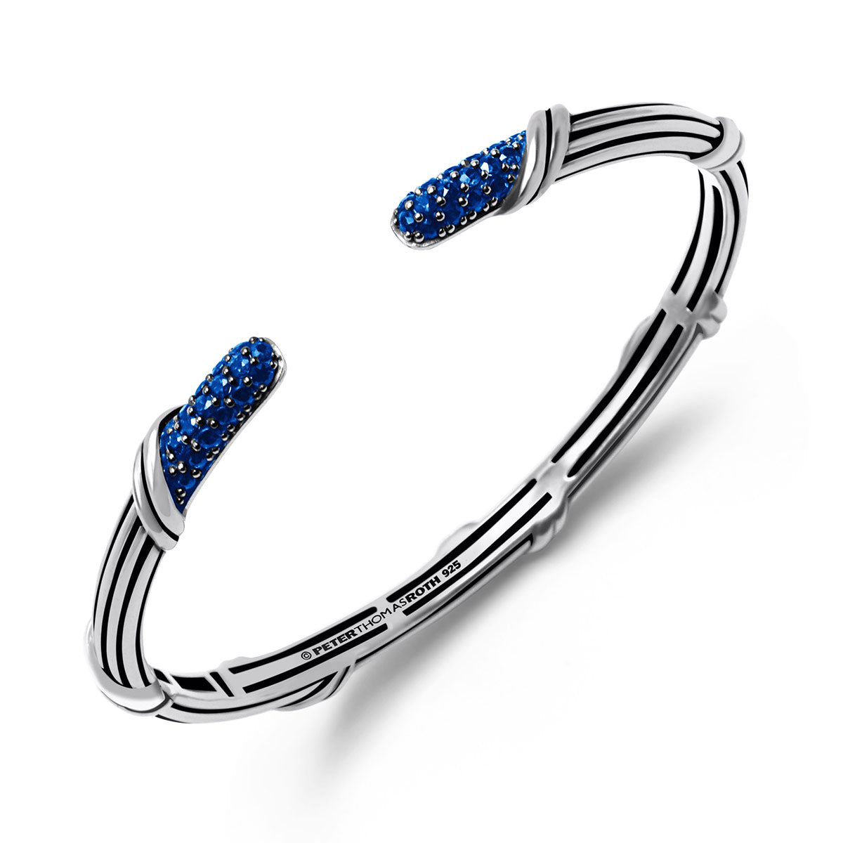 Signature Classic Pave Cuff with blue sapphires in sterling silver 5mm