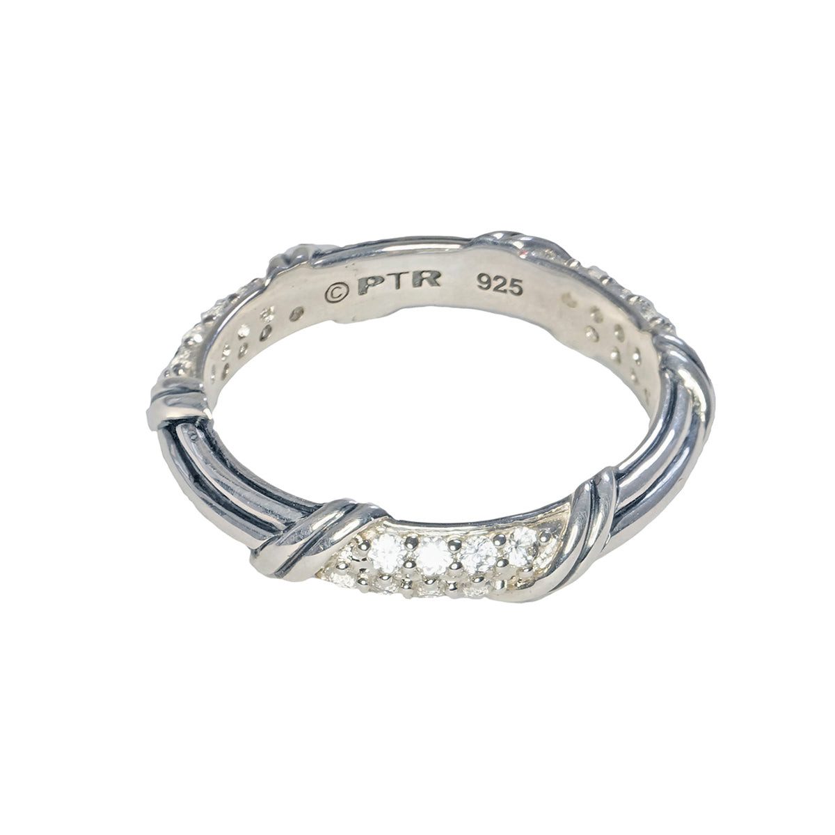 Inspired by an iconic motif, interpreted for today, Ribbon and Reed Signature Classic epitomizes modern elegance. Cast and finished by hand, this precious sterling silver gemstone pave band ring reveals beautiful white topaz. Wonderful for stacking or perfect as a promise ring.