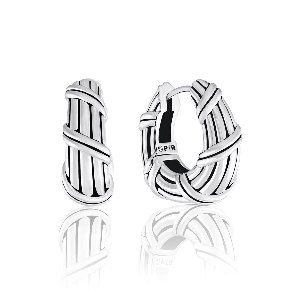 Inspired by an iconic motif, interpreted for today, Ribbon and Reed Signature Classic epitomizes modern elegance. Cast and finished by hand, a classic huggie oval hoop earring style in sterling silver for pierced ears.
