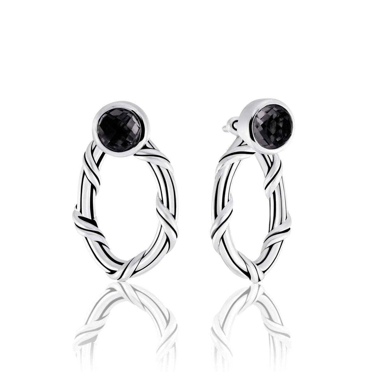 Sorbetto Gemstone Front Back Hoop Earrings in sterling silver with black onyx