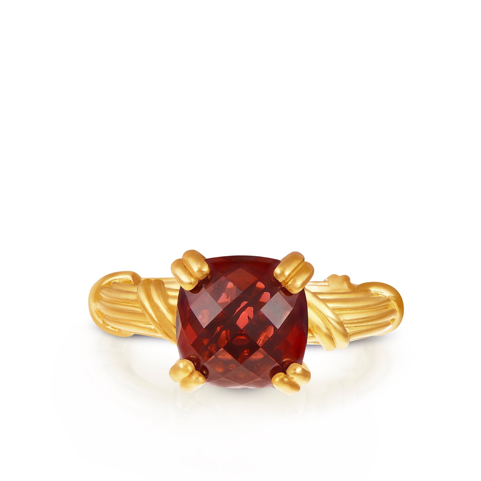 Dreams come true with artfully crafted, luminous gemstone designs in Peter Thomas Roth’s Ribbon & Reed Fantasies Collection. Discover a lustrous palette of gems specially cut to reveal one of a kind radiance in rich hues of blue, rose, yellow, and more. Shine brilliantly with these modern creations in sterling silver or 18K gold. Cast and finished by hand, this exquisite gemstone ring reveals a red garnet.